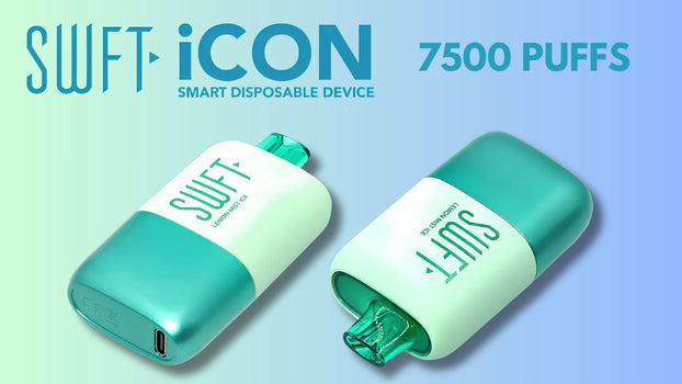 Presenting the SWFT iCON 7,500 Puff Pro Disposable Vape - This disposable is pre-loaded with 17ml of premium e-liquid, containing 50mg of nicotine. Each device offers approximately 7,500 puffs. This stylish and portable disposable vape is made to improve your vaping experience in addition to having cutting-edge functionality. With innovative mesh coil technology, SWFT Disposable offers steady and tasty vapor output with each puff. Dry hits are also no longer a problem thanks to the integrated anti-burn technology.